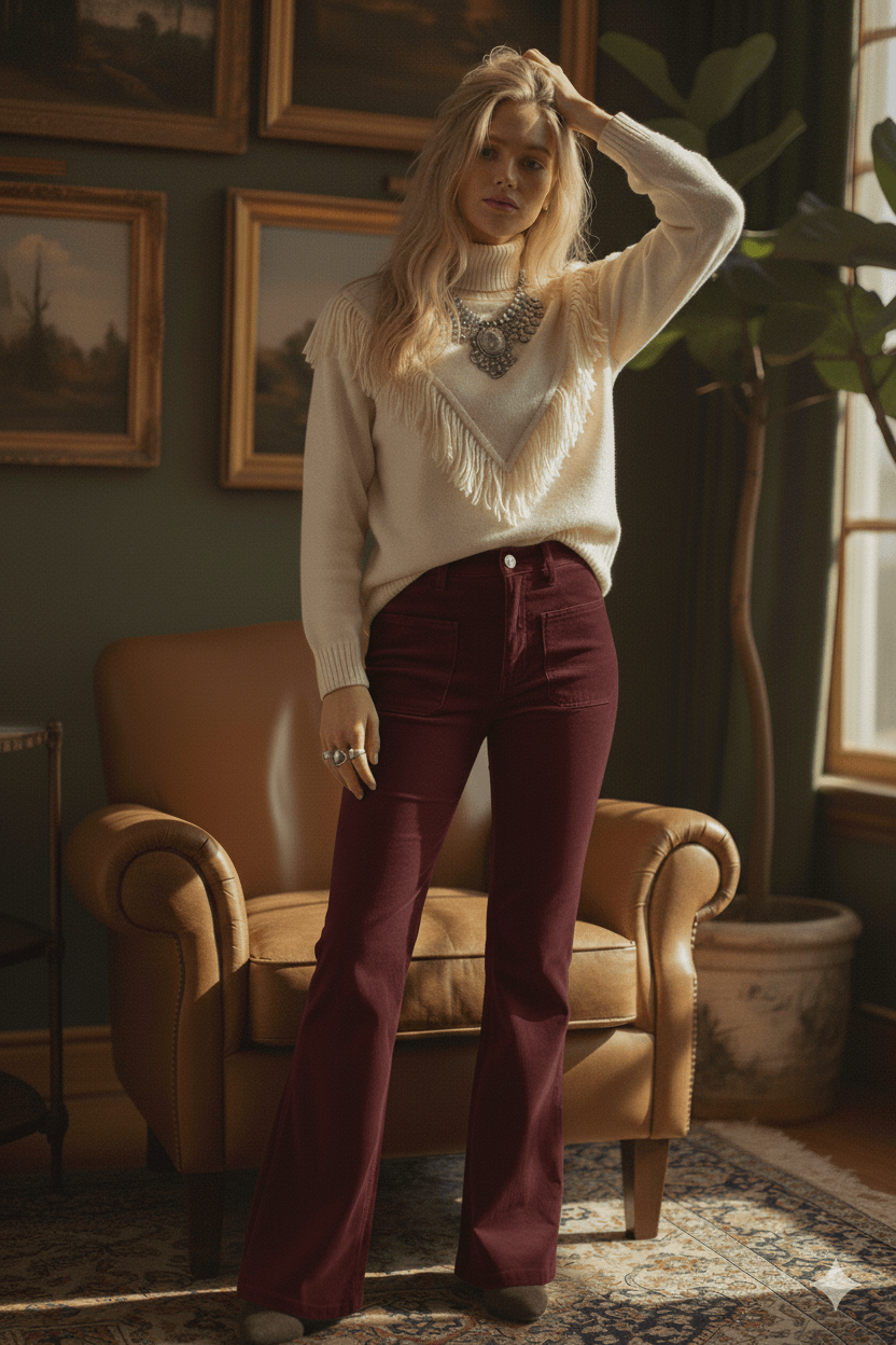 Perfect for pairing with cozy knits, sleek blouses, or casual tees, these pants transition effortlessly from work to weekend. The deep burgundy hue makes them a versatile seasonal staple, offering endless styling possibilities from fall through spring.