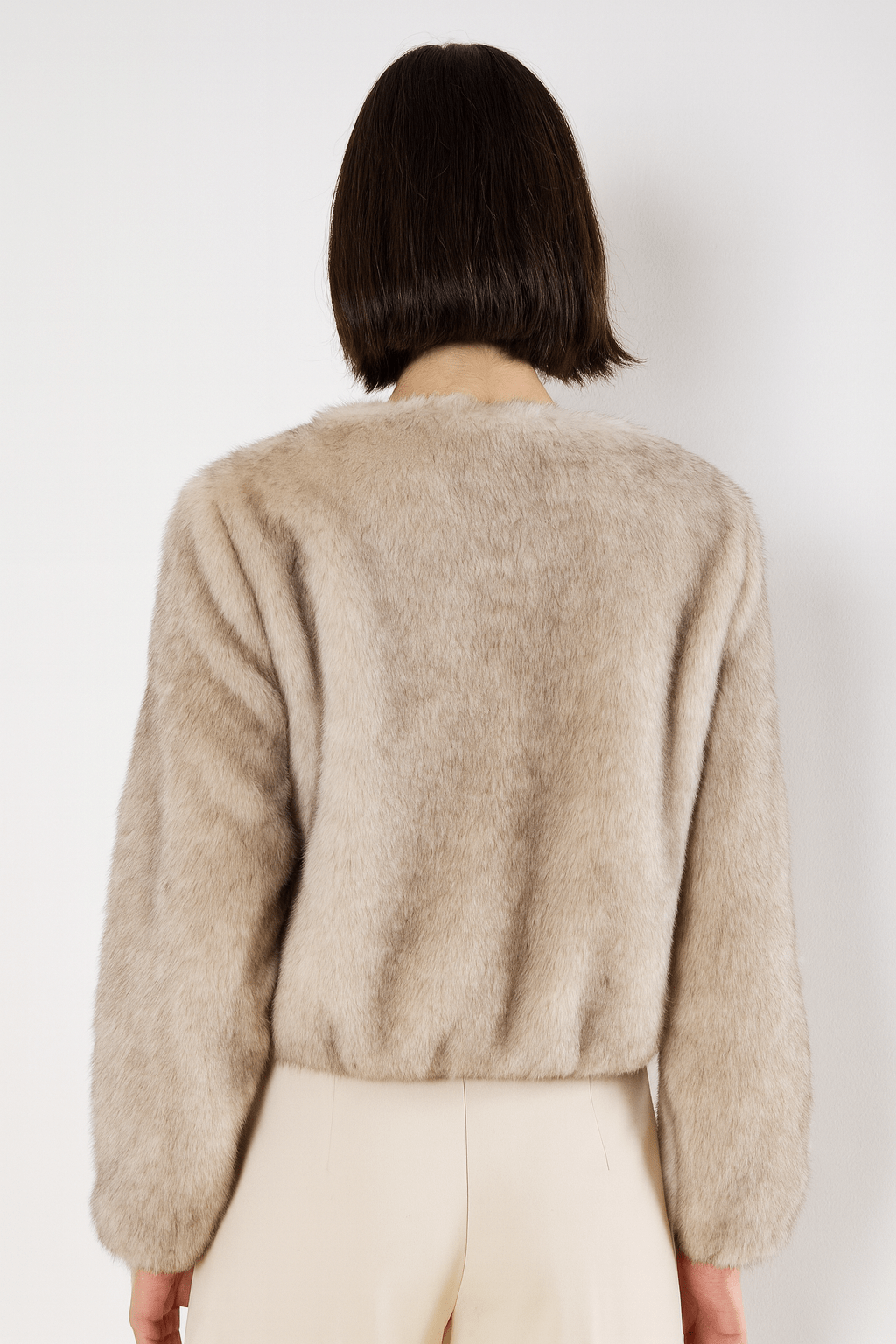 Soft, luxurious, and effortlessly chic — the Taupe Faux Fur Jacket is the statement layer your wardrobe has been waiting for. Crafted from plush, high-quality faux fur with a subtle sheen, this jacket delivers warmth and sophistication in equal measure. Its clean, collarless neckline and minimal silhouette make it endlessly versatile — perfect for dressing up a slip dress or adding a touch of glam to jeans and a tee. Fully lined for comfort, with discreet hook-and-eye closures that maintain its sleek, modern finish.