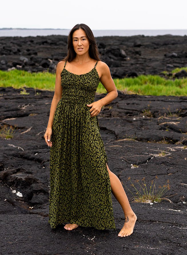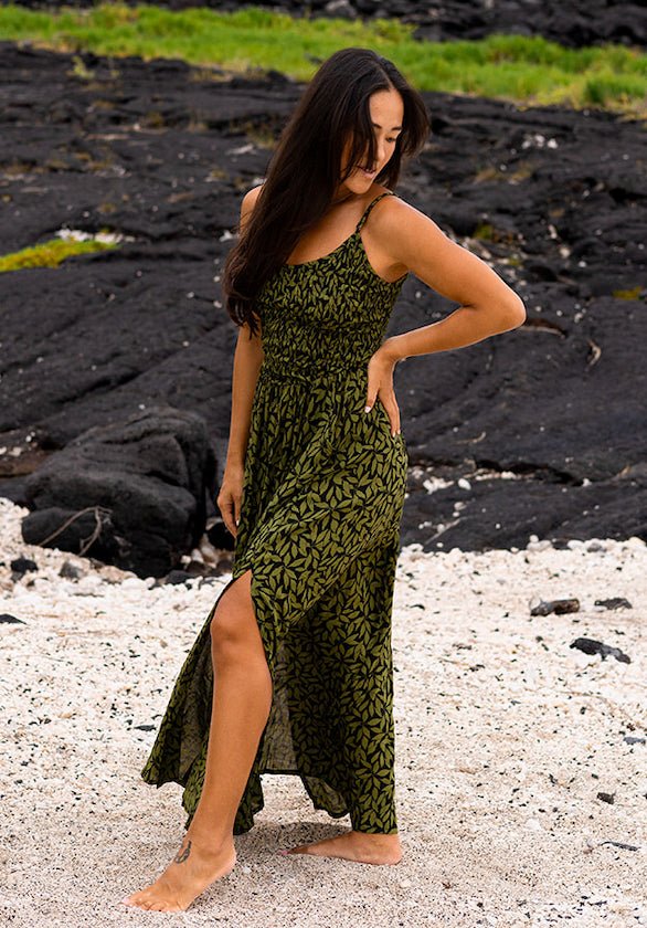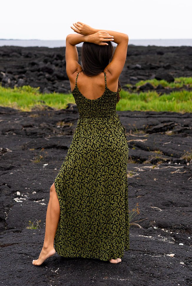 Olive Leaf Smocked Maxi Dress