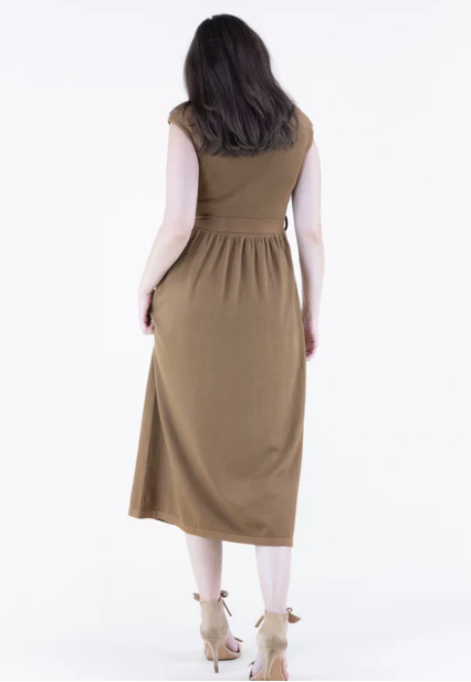 The midi length creates a timeless silhouette that transitions seamlessly from casual daytime wear to more elevated evening looks. Pair it with sandals or espadrilles for an easy weekend outfit, or dress it up with heels and statement jewelry for dinner out. This dress offers the perfect balance of relaxed ease and refined charm.