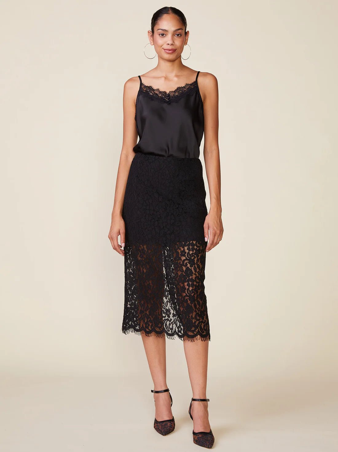 Elevate your everyday style with a touch of luxe. This satin lace cami is the definition of understated elegance — smooth, silky, and designed to drape beautifully. The delicate lace trim along the neckline adds a romantic finish, while the minimalist cut makes it endlessly versatile. Whether layered under a blazer or paired with jeans and heels, this piece transitions seamlessly from day to night.