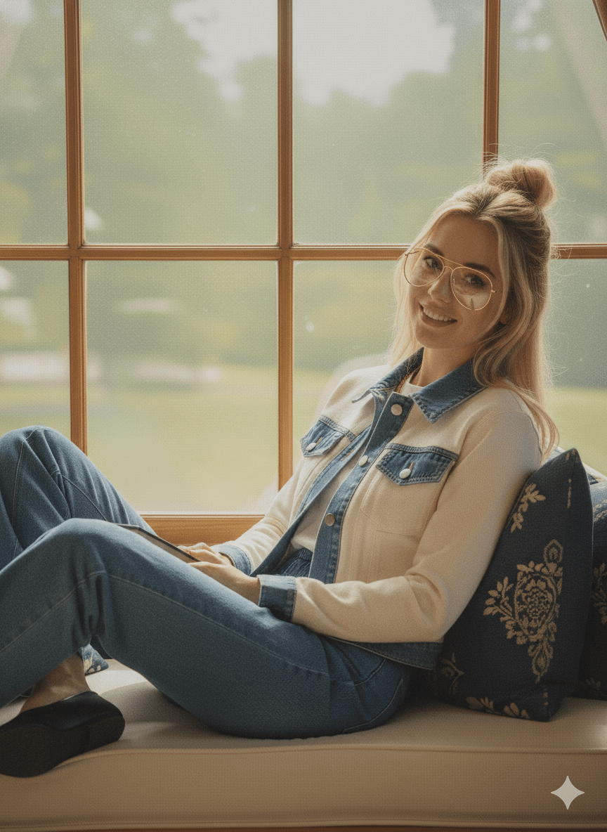 Cream Cardigan w/ Denim Trim - Small is backordered and will ship as soon as it is back in stock.