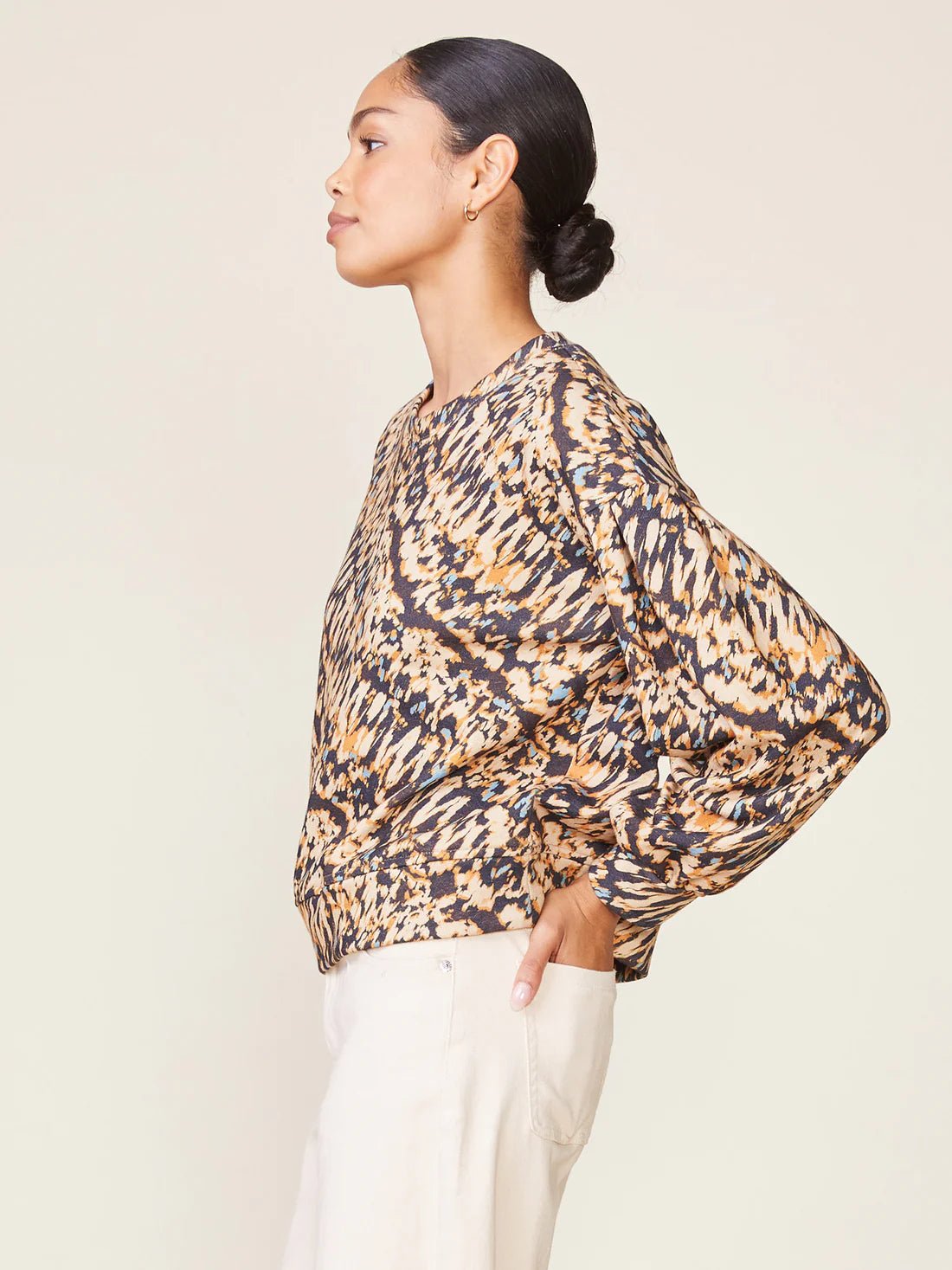 Bold meets effortless in this printed pullover top — a standout piece that instantly elevates any outfit. Designed in a soft, lightweight fabric with an abstract brushstroke pattern, it delivers that perfect blend of comfort and cool. The relaxed silhouette and subtly tapered hem make it easy to half-tuck into jeans or pair with tailored trousers for a more polished vibe.